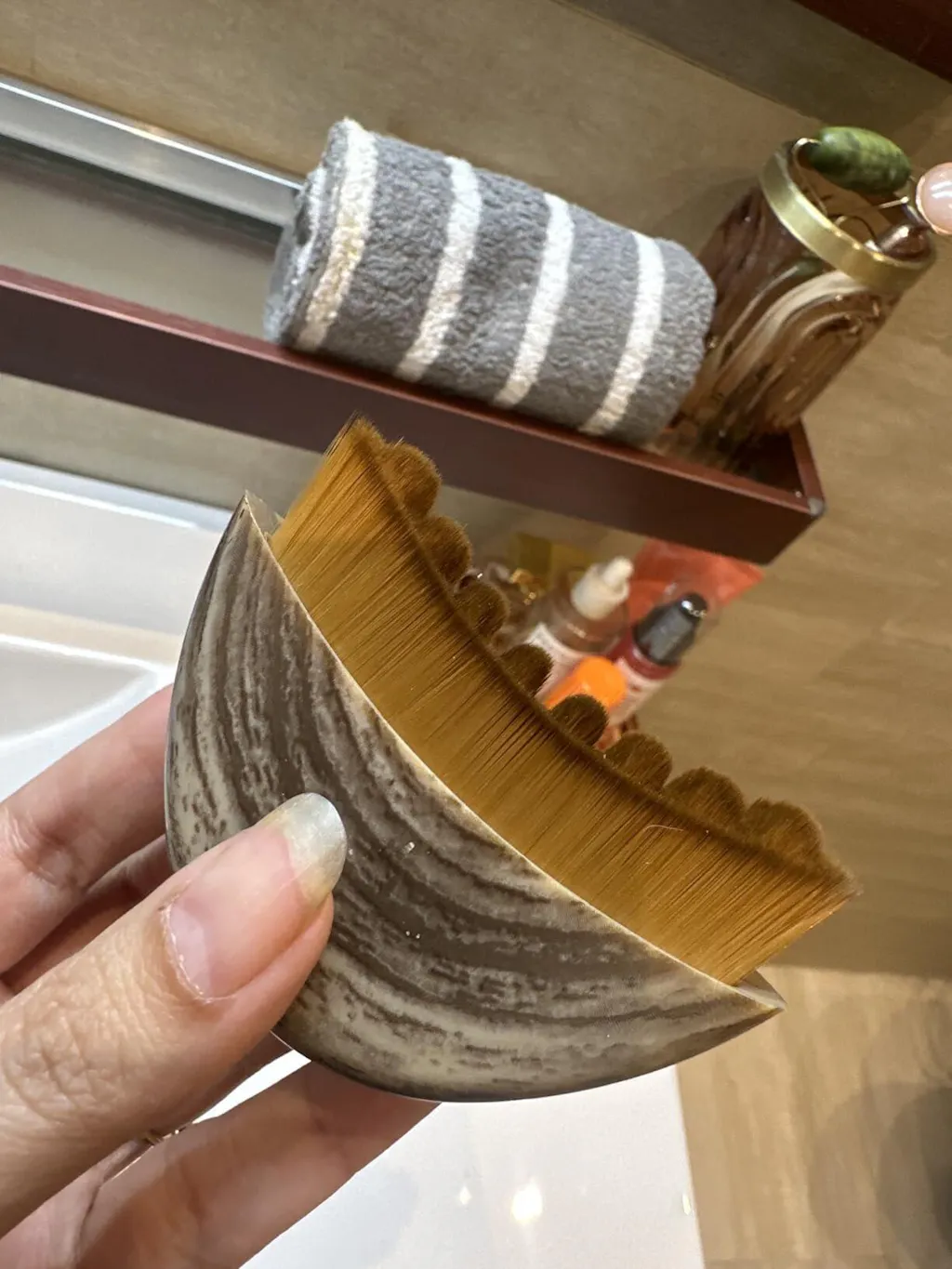 This lymphatic contour face brush feels like a mini spa session at home ,the soft bristles are gentle yet effective around my jawline and neck. After a few uses, I noticed less puffiness and a subtle, natural lift that made my skin look fresher and more awake. Plus, the travel case makes it so easy to stay consistent, even when I’m on the go